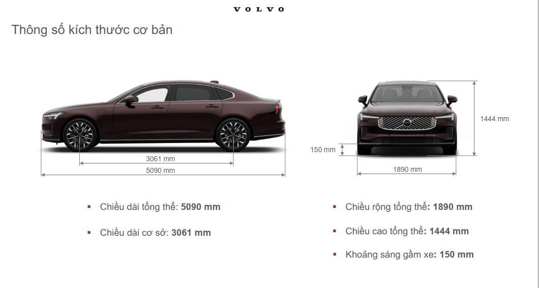 Kích thước của Volvo S90 2026: 5090x1890x1444(mm)